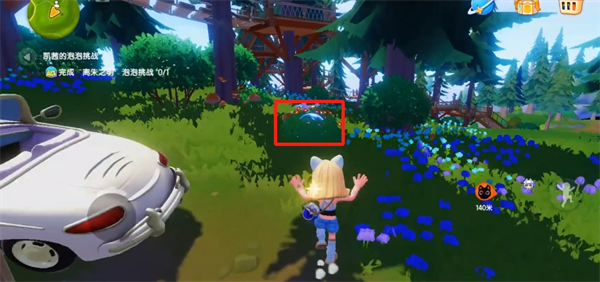 3、来到灌木丛候,可以看到隐藏在灌木丛中的离朱之明泡泡,靠近后即可完成挑战;