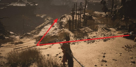 1、推到第二回后,从定风桥土地庙出发,按照下图标示过桥进村子;