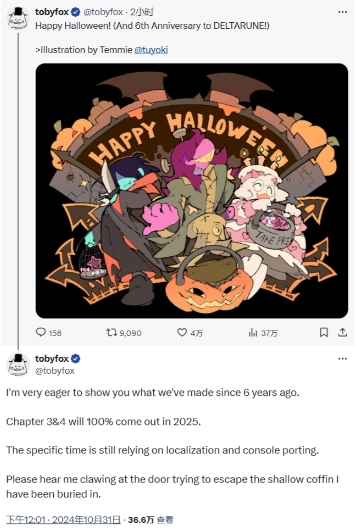 正如之前宣布的那样《三角符文》第三章、第四章和第五章将作为付费版本发布,游戏第一章和第二章目前已免费登陆PS4、Switch和Steam,而根据此前Toby Fox的说法,游戏第五章目前正在努力开发中。