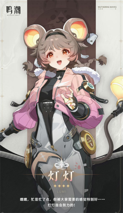 角色介绍台词:嘿嘿,忙是忙了点,但被大家需要的感觉特别好......灯灯我会努力的!