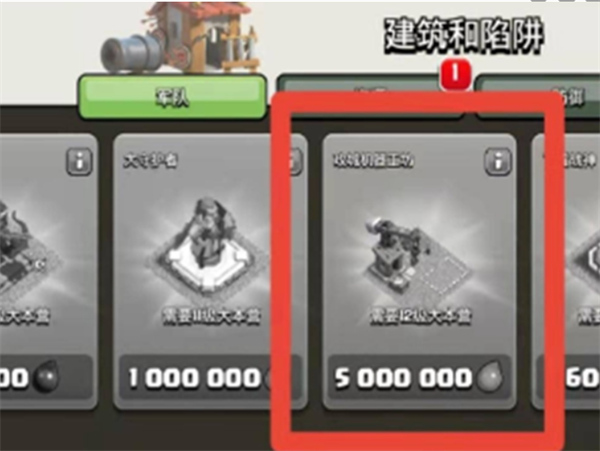 在解锁条件满足后,玩家需要花费500万圣水来修建攻城训练营。