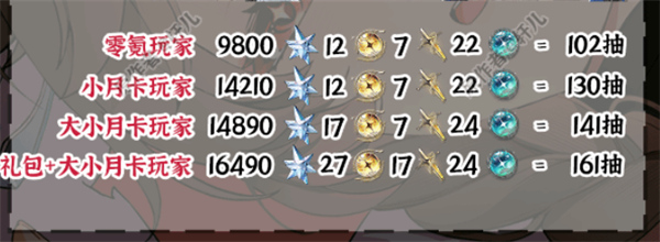 大月卡:15730星声、17浮金波纹、7铸潮波纹、27唤声波纹。