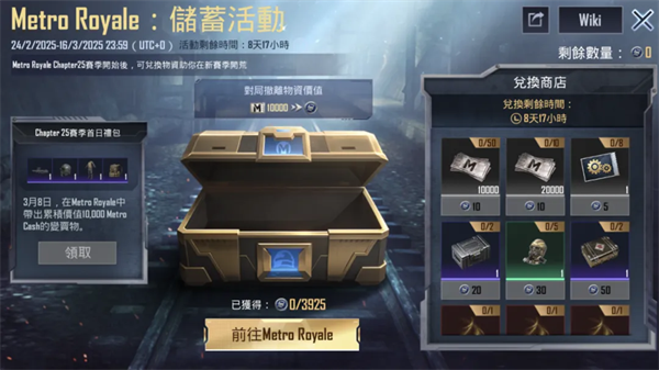 3月8日-3月16日期间,消耗之前积累的储蓄币,可在活动页面右侧的兑换商店兑换游戏道具、地铁逃生物资等奖励!