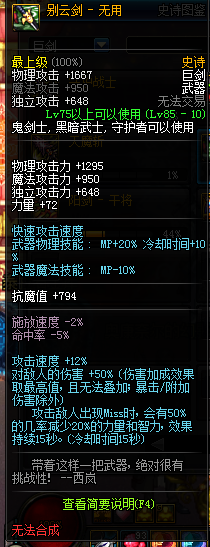 或者就是别云剑了,这个武器别的职业可能很难受,我玩剑宗的时候就深深的感到无力啊。。。(荣耀之剑!!!!MISS!!!)我难受啊,马飞。