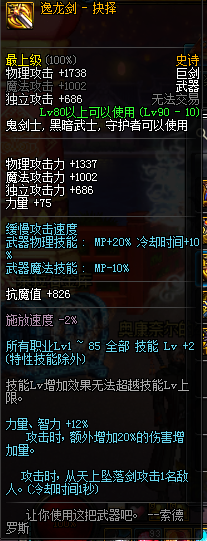 开罐子出85-90武器,我们选择巨剑。按照老马的尿性,圣剑这种东西,他是不会放到罐子里。(如果你出了圣剑,马上+10/+11,等到有荒古的时候再换了)