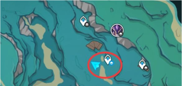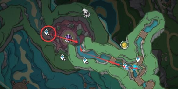 元件④:如果这个水下传送点没解锁,可以从雷麒麟那边出发,从水潭跳下后经由水道可以到达这个区域开传送点,地图上是不显示的哦。拾取地上的鸡腿后,击败发条机关。