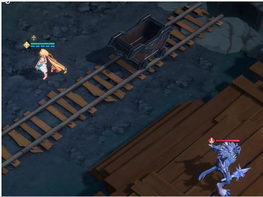 2.前往下图所示位置,打破岩石,然后等待并使用矿车击败沿途的怪物。
