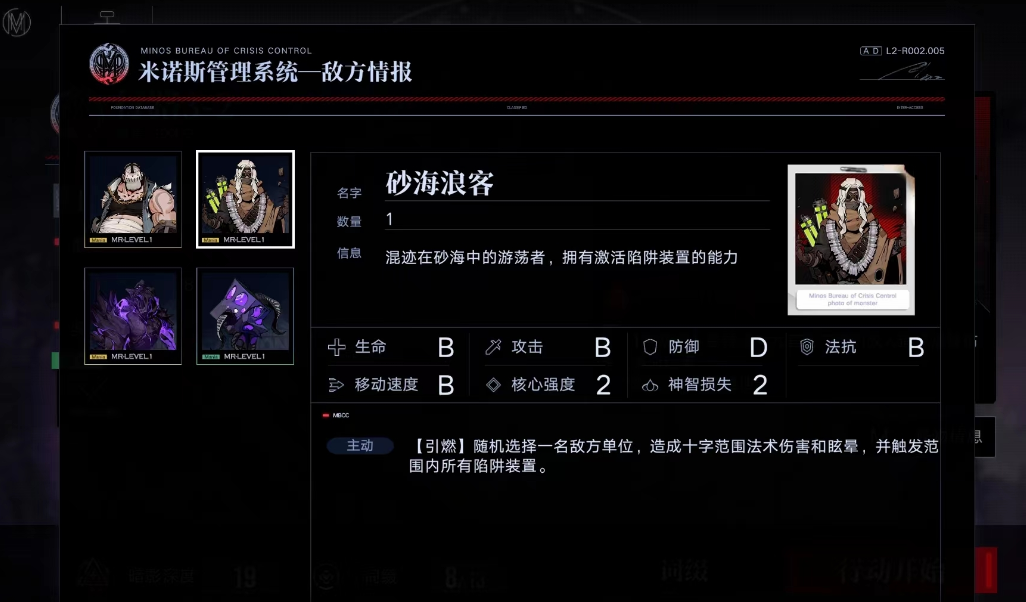 当流浪法师到达这个陷阱格子时,他立即使用【点燃】引爆陷阱,清除掉陷阱内的所有法师,接下来就是战斗了。