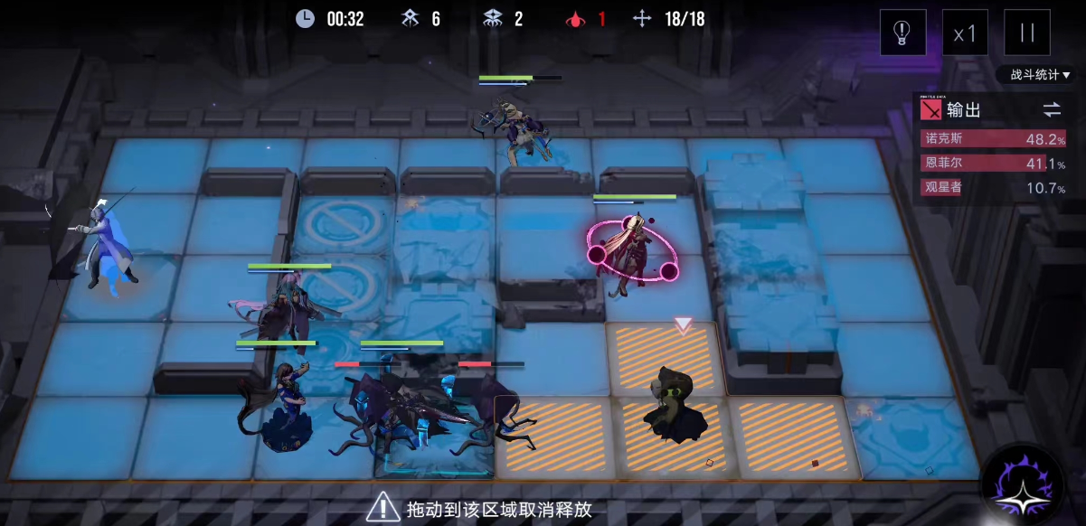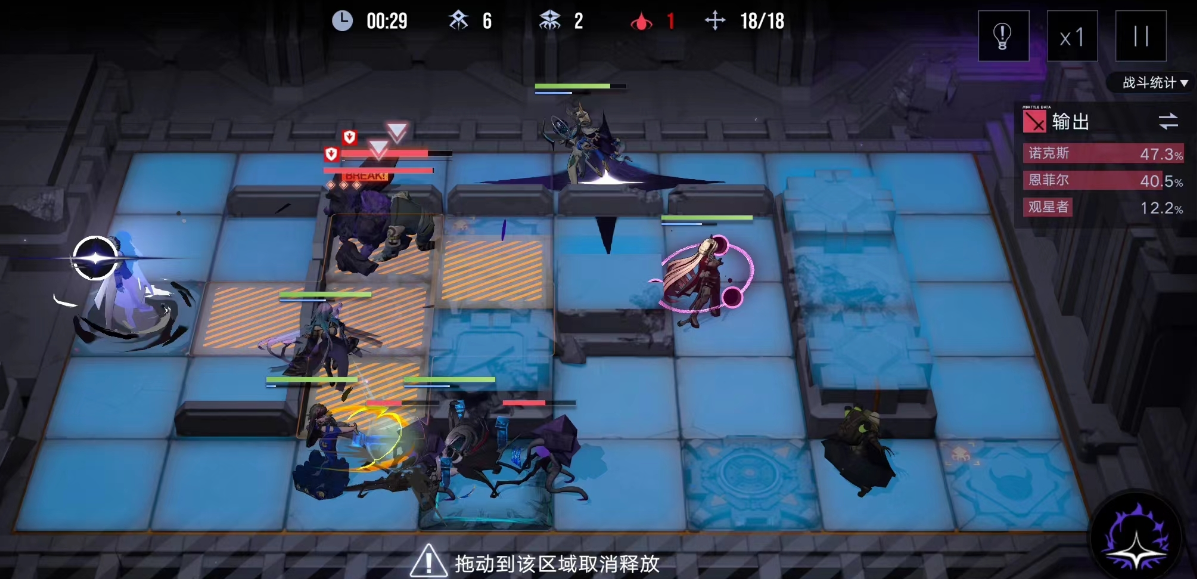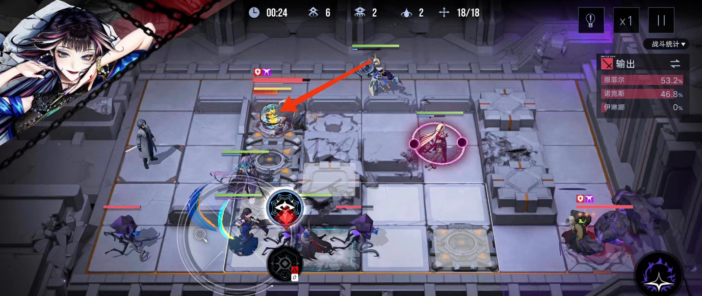 一开始要小心,等这个一核精英怪物来到这个格子里,立刻使用恩菲尔的特殊烙印来打破核心。这样我们就有了4点能量,可以用来点燃两次。