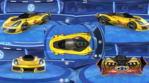 车身主色调为黄色,搭配两个大灯组,给该车带来了年轻的感觉。蓝色线条点缀的进气口和尾翼科技感十足。当氮气释放时,两侧的GT图标给驾驶者带来一键GT的快感,勇往直前。赛车发动机上的两个冷却风扇也使赛车始终保持最佳状态。