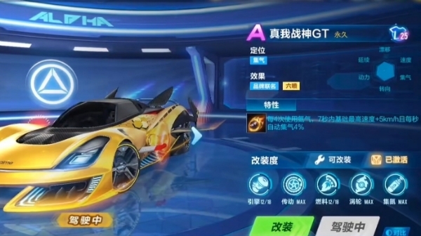 A车realme战神GT由阿尔法汽车厂研发制造。机身采用稀有材质打造,采用光滑的黄黑流线型机身设计。搭载最新realme引擎,让你在赛道上自由驰骋,无后顾之忧。担心发动机过热。舒适的手感和强大的集气性能一定会帮助骑手在比赛中取得好成绩。