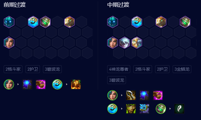 前期尽早收集3个碧波来叠加碧波龙的层数是一个不错的选择,这样可以尽快形成阵容装备,也可以使用3个金鳞来工作支援经济。如果你有可用的设备,直接购买即可。后期可以使用比波龙的重铸器来弥补更好的神装。