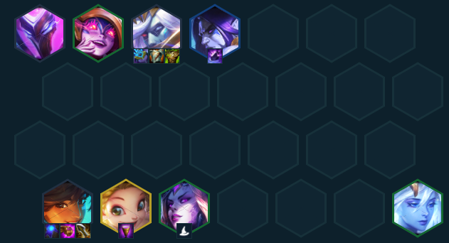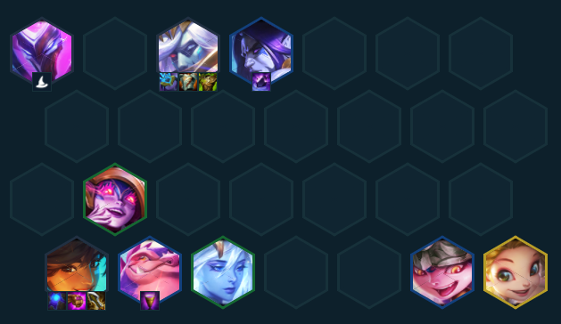 利用前期的优势,尽快拿到七。你可以找到婕拉来获得2个暗影的羁绊。一般来说,你不会停留在人口7。你可以省钱并快速达到人口8。如果选秀中有佐伊/法师纹章,那么你可以不假思索地得到它。
