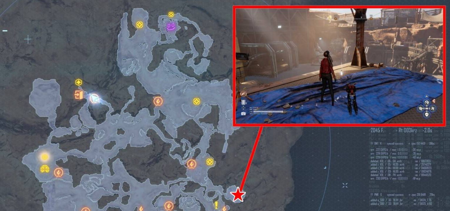 位置:废品堆放场,使用集装箱跳上蓝色塑料布的平台,在平台尽头。