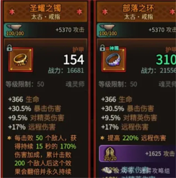 部落之环(提供远程伤害,代替无用的圣耀之镯)