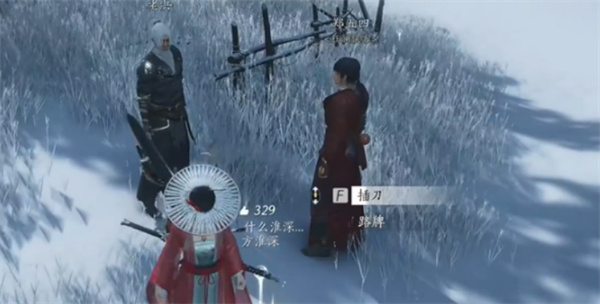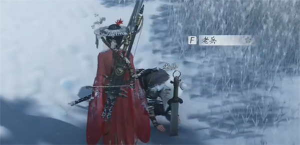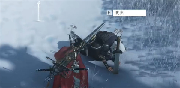 接着触发剧情,拔出老兵前方的刀以继续任务。