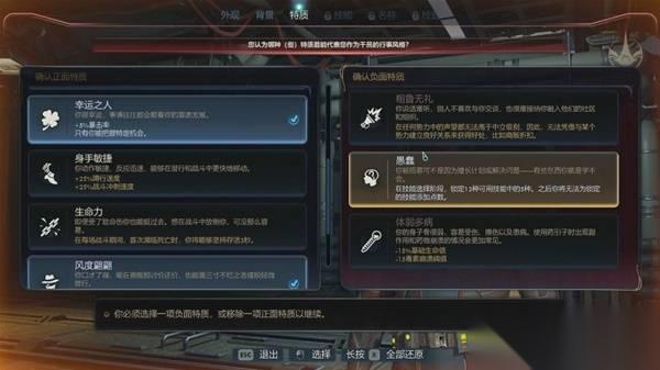 正面特质最多可以选择两个,不过选择两个正面特质的话必须要选择一个负面特质,不想选负面特质的话可以就选择一个正面特质。