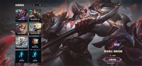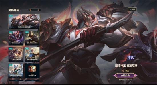 秘宝商店提供包含【圣洁神王 德莱厄斯】、【堕落神王 盖伦】、至臻皮肤、臻彩皮肤等珍稀道具的兑换。本次【秘宝商店】会不定期上线新道具供兑换,敬请留意。