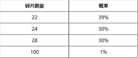 碎片掉落概率如下:
