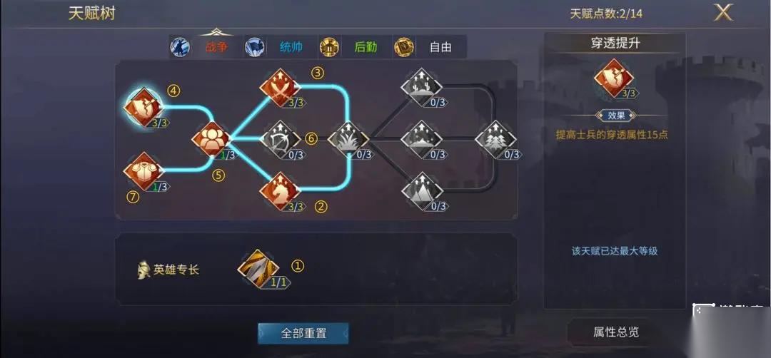 ④骑兵增伤和步兵增伤点满后,回头将‘穿透’点满;