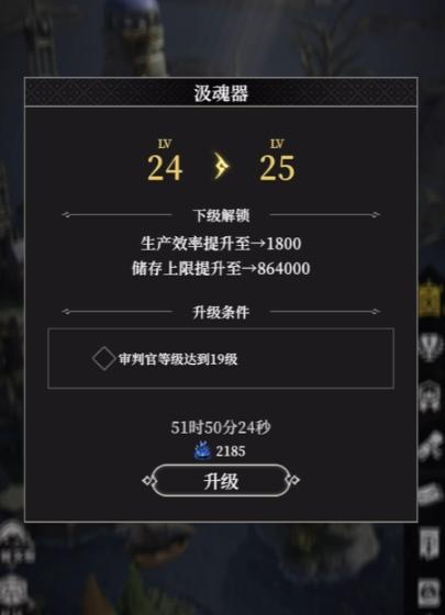 升级的时候有几个细节得特别注意,第一个是阶段突破,每升10级就会遇到一个瓶颈,必须用魂之契印才能继续升级,这种契印只有每周军团试炼的排名奖励能拿,所以得优先给主力汲魂器用,第三个是能量吸收的操作,每次打完副本或者挑战BOSS之后,一定要记得去汲魂器界面点吸收,把战斗中产生的游离魂能收了,能量满了之后会触发一个24小时的属性增幅。