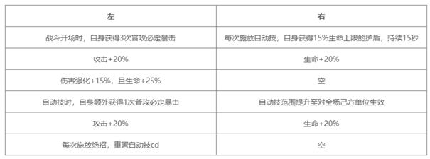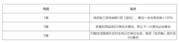 技能描述:每次造成暴击伤害后,300范围内己方单位,获得增益「各尽觞」,提升4%暴击伤害,持续10秒,上限8层。