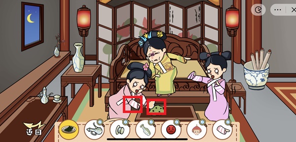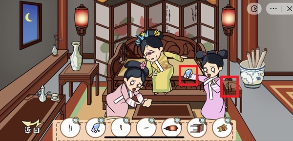 3、将右侧宫女的手帕拖到华妃面前,就得到一块“湿巾”。右边的宫女也有“惊慌动作”;