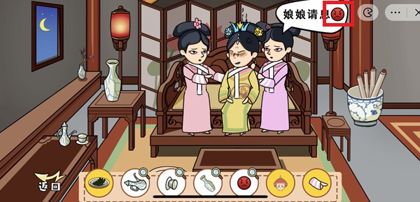 4、拖动左右宫女分别站在华妃左右两侧。将出现两个交换。找到“太监”和“愤怒”;