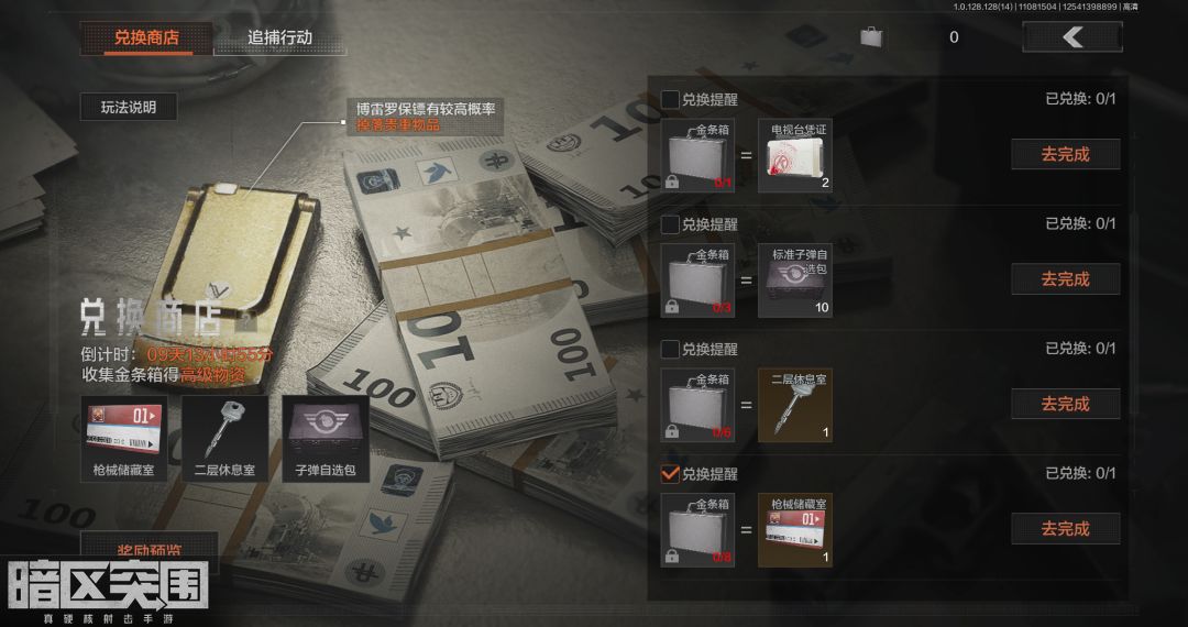 追捕行动的兑换商店将持续开放至11月17日活动结束,已经拥有金条箱的开拓者记得去兑换高端物资哦!
