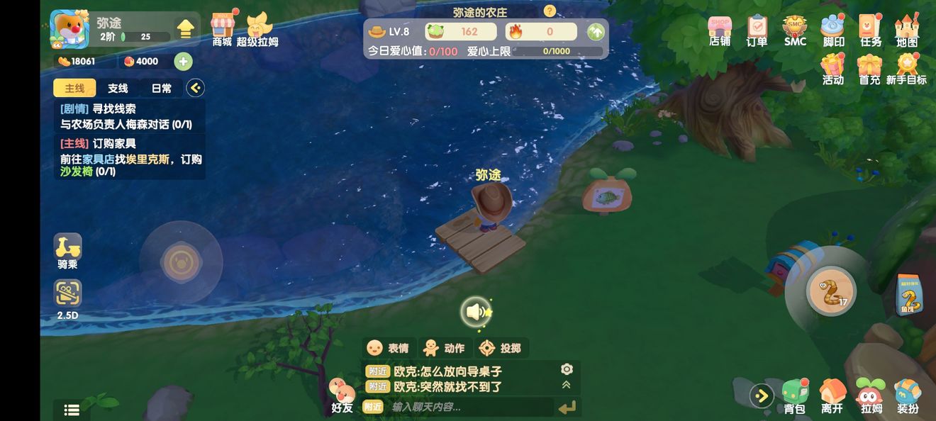 第一个是家里的池塘。这个钓鱼点的具体位置,点击你家邮箱旁边的地图即可传送回你家。然后向上向右走就可以到达这个钓鱼点。