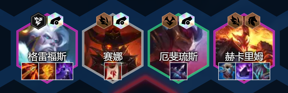升级为3-2 6人。 6人希望身体健康。过渡阵容根据自己的情况而定。如果你要过渡到重骑兵和大炮,如果坦克性较差,则添加第二个瑞尔,如果输出较差,则添加第二个厄斐琉斯。在考虑传送门之前,请确保装备有泽克和盾大师的誓言。如果输出装备较多,可以先给塞纳,之后再转给格雷夫斯。记得多带一点番泻叶。
