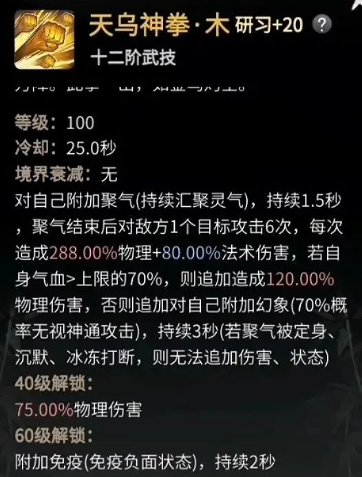 天武目放置在控制技能苍龙定元吼之后,防止对方打断聚气。