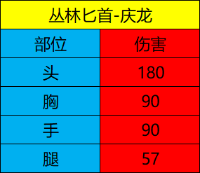 同时,丛林匕首的二级伤害也可以让我们在打刀时多一次犯错的机会。与同品质需要花钱的欢丛林匕首相比,可以说性价比更高,是一款不可多得的平民T1近战武器。以下是小编整理的这把武器的伤害点供小编测试。