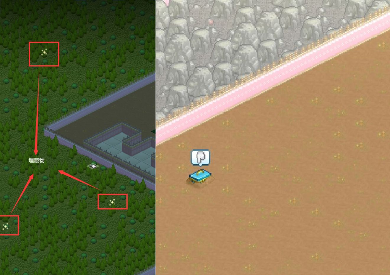 一些埋藏的物体可以从地下挖出来。埋藏的物体会发光,您可以在挖掘它们之前看到它们的位置。埋藏物大多是一些道具、金钱、一些地板和一个花车。