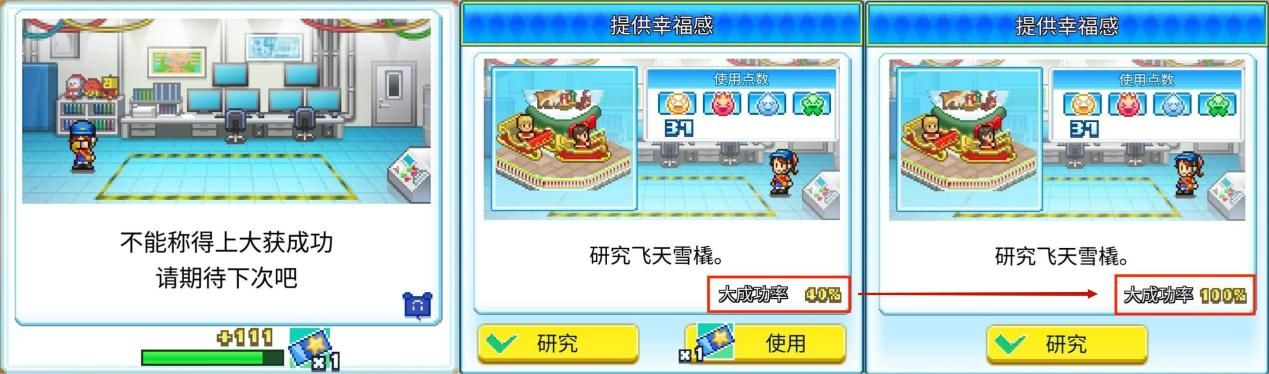 研究设施有可能发生故障。您可以在右下角查看成功概率。当你成功时,你可以点亮星星以获得进步。例如,成本会降低。当你成功时,维护费就会减少。不过,当你失败时,维护费用不会减少,但你仍然可以获得等级提升进度。随着进度条的增加,你还可以获得蓝票来获得进度。增加的进展是本研究中使用的情绪数量。当进度条满了,你会得到一张蓝色的票。蓝票可以将研究成功率提高到100%。