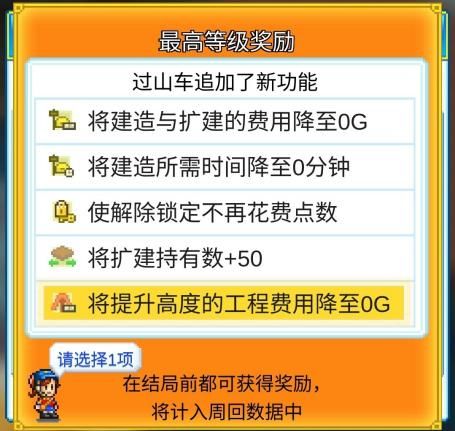 五级之后的第三个奖励意味着解锁设施不再需要积分。这意味着,当你在13年后选择开启第二款游戏时,该设施不再需要花费积分来解锁。但一般来说,最划算的选择是将加高工程的成本降低到0。如果要结束定居后重建,建议的选择是将建设和扩建的成本降低到0。只需根据您的需要进行选择即可。