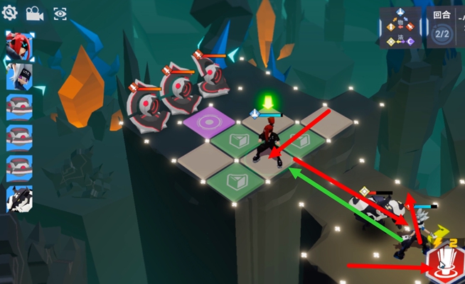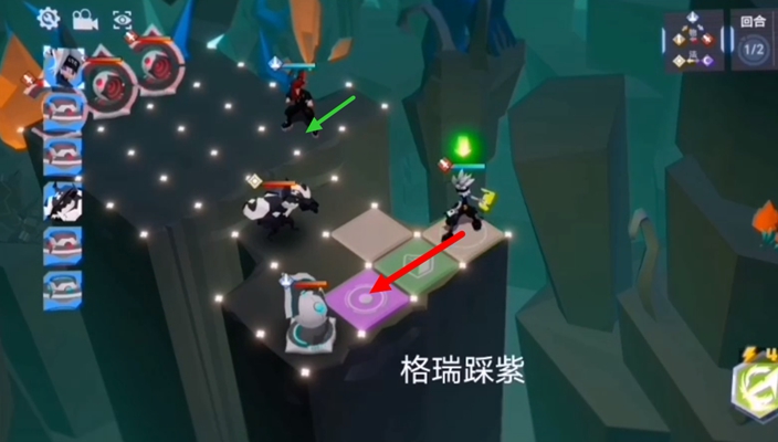 3、灰色踩着紫色格子攻击前面的小怪,等待旁边的两个小怪攻击,然后反击收割剩余的血量。战斗结束。