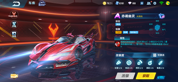 赤焰幽灵具有优异的综合性能,出色的速度和转向性,并配备实用的赛车功能。是一款颜值与性能兼具的五喷A级赛车。快点开始吧!