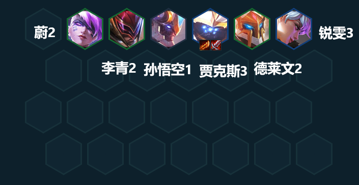 一开始建议使用孙悟空、德莱文、鲍比组成2守卫1精英战士的阵容。肉装备可以先给鲍比,贾克斯的装备可以先给德莱文。只要经济允许,我们就可以快速抽到5张。这样做的好处是:第一,可以更早地解锁三费卡的刷新,这有助于我们抽到更多的贾克斯;第二,可以更早地解锁三费卡的刷新。其次,即使我们不抽贾克斯,我们仍然可以使用3个年轻天才、2个后卫和1个精英球员的阵容,保证前期健康的血量。