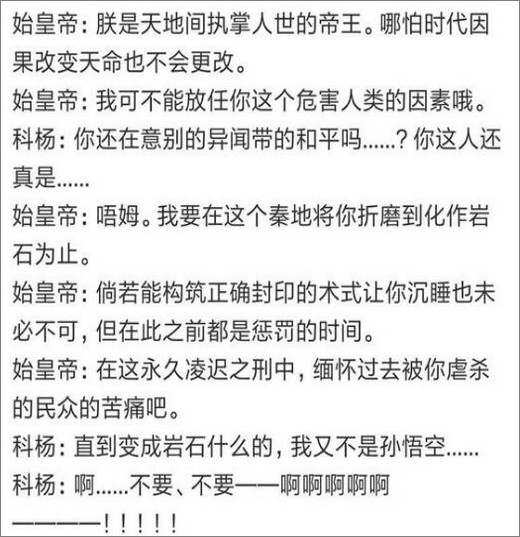 你没听错,始皇帝直接它给抓了!下图是剧情翻译的一部分,始皇帝把兽给抓住后严刑拷打,直接封死了。